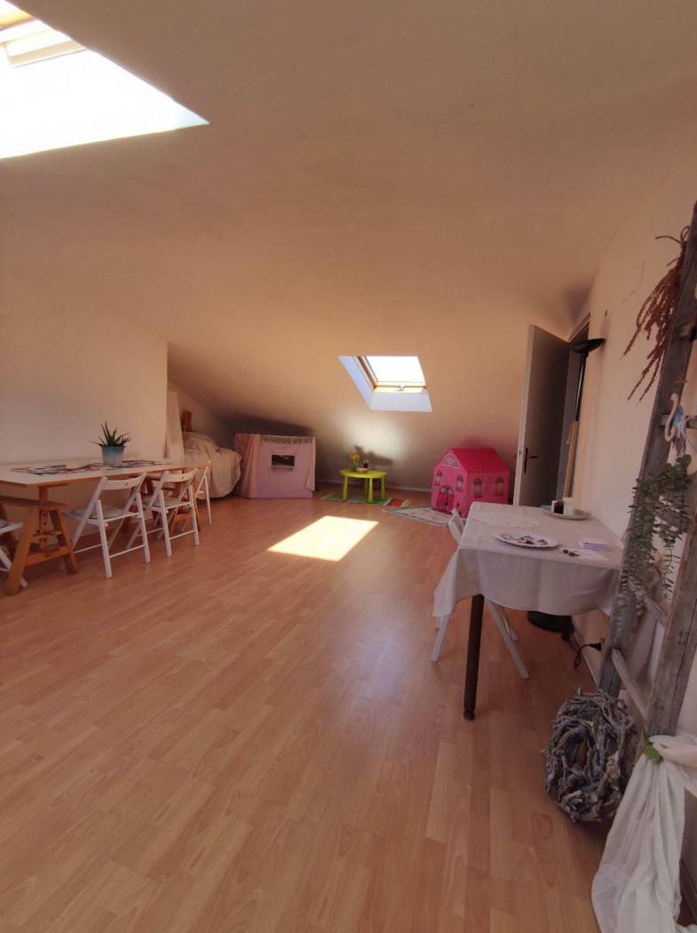 Al piano terreno troviamo tre vani oltre al bagno con antibagno e locale doccia, scala interna in legno conduce al piano mansardato con soffitti a volta e velux che garantiscono un eccellente illuminazione naturale, completano la proprieta' due aree esterne , la prima sul fronte quale parcheggio per tre mezzi una seconda sul retro dell'immobile pavimentata e recintata di circa 130 mq .